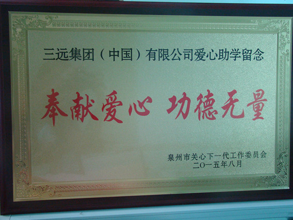 8月20日,泉州市關心下一代工作委員會在市老年活動中心舉行2015年泉州市關工委“愛心助學”座談會,三遠集團代表出席。