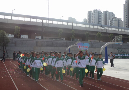 上午七點半,在激昂的運動員進行曲中,國旗方陣、校旗方陣、運動會會徽進入運動會場,第九屆校園運動會的開幕式正式開始。軍鼓隊、彩旗隊、鮮花隊、腰鼓隊齊上陣,彰顯著中遠學校的風采。以班級為單位的40個運動員方陣,昂首挺胸,踏著整齊的步伐,高喊著“友誼第一,比賽第二”“強健體魄,挑戰自我”的口號一一從主席臺前經過,向學校領導和老師們展現不一般的青春活力!另有高二一班、高三一班等在主席臺前,以節目的形式展現他們此次運動會的雄心壯志,給人陣陣驚喜;更有古箏興趣班的同學們以幽雅的古箏聲傳遞動感十足的《小蘋果》樂曲,令人耳目一新,帶來別樣體驗!