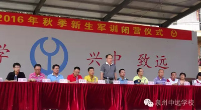 8月29日下午,泉州中遠學校舉行2016年秋季新生入學軍訓閉營儀式。在同學們嘹亮的口號聲中,為期五天的入學軍訓畫上了圓滿句號。