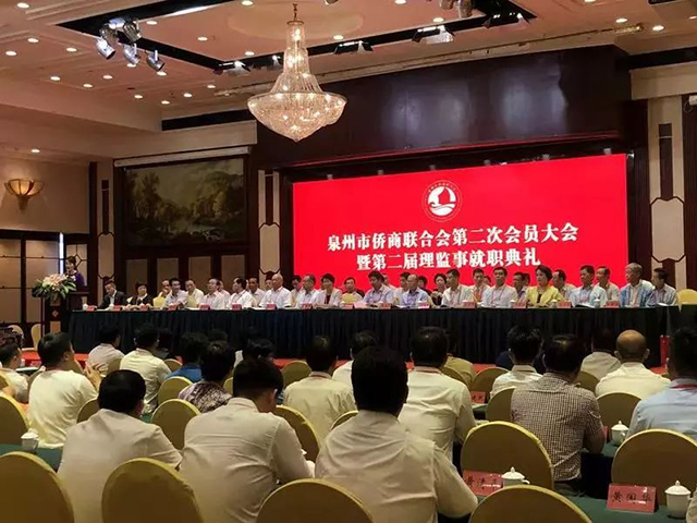 6月4日,泉州市僑商聯合會第二次會員大會暨理監事就職典禮在泉州隆重舉行。中國僑聯副主席、福建省僑聯名譽主席王亞君,福建省僑聯副主席翁小杰,泉州市委常委、統戰部長林萬明,泉州市人大常委會副主任張建生,泉州市政府副市長季翔峰,泉州市政協副主席洪川夫等領導到會慶祝并作工作指導。