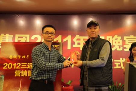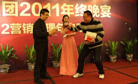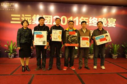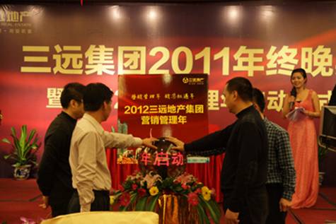 集團董事、常務副總裁陳章勃先生致開幕辭 歡樂祥和的晚宴現場 2012年腳步悄然而至,新年伊始,三遠集團于1月18日在泉州悅華酒店隆重舉辦2011年會晚宴暨2012營銷管理年啟動儀式。集團公司領導、眾多業界友人及集團全體員工盛裝出席,會場人聲鼎沸,熱鬧非凡。 集團吳遠康董事長與陳總簽訂責任狀 集團董事會成員啟動營銷管理年水晶球 晚上7點左右,眾多嘉賓在悠揚的鋼琴曲中陸續到場。宴會廳優雅的氛圍,伴以背景音樂、精致的會場布置以及華服、微笑、禮贊,活動氛圍十足。 陳總為營銷管理年宣傳口號優勝者頒獎 陳總與張清泉助理為營銷管理年宣傳海報揭幕 本次三遠集團2011年會晚宴的驚艷之處,在于“2012三遠地產集團營銷管理年”的盛大啟動儀式。三遠地產面對當前嚴峻的市場大環境,內強管理、外拓市場,提出2012年為三遠地產營銷管理年的建設口號,旨在憑借三遠地產22年的專業地產開發經驗及沉淀,用心構景,用愛筑家,平度市場波動時期,為居者著想,為后代留鑒。 吳董向來賓、員工們賀歲祝酒 火紅的舞蹈——《恭喜發財》 在啟動儀式上,三遠集團董事、常務副總裁陳章勃先生為優秀宣傳口號征集活動中的優勝者進行頒獎,借以鼓勵全體三遠員工獻計營銷、參與營銷。當晚,三遠集團各董事會領導還為“2012營銷管理年”舉行了宣傳海報揭幕,營銷管理中心團隊登臺高喊“營銷管理年”宣傳口號,進一步促使了營銷管理概念深入三遠人心。 情景劇《西游記之收編豬八戒》演員們表演得很認真 薩克斯獨奏小表演者 在盛大的“2012三遠地產集團營銷管理年啟動儀式”之后,是員工自創節目表演,合唱、獨唱、舞蹈、薩克斯獨奏、情景劇《西游記之收編豬八戒》等等,一波接著一波的創意搞笑節目,博得了現場觀眾的陣陣掌聲。 吳董抽取IPAD大獎獲得者,獲獎者不勝歡喜 獲獎者手捧大獎,喜樂融融 在節目表演的同時,穿插進行著令人歡呼雀躍的抽獎環節。當晚,現金大獎、微波爐、按摩器、蘋果IPAD大獎等數十項精彩好禮紛紛呈現,熱鬧的頒獎儀式將晚宴的現場氣氛推向了高潮。